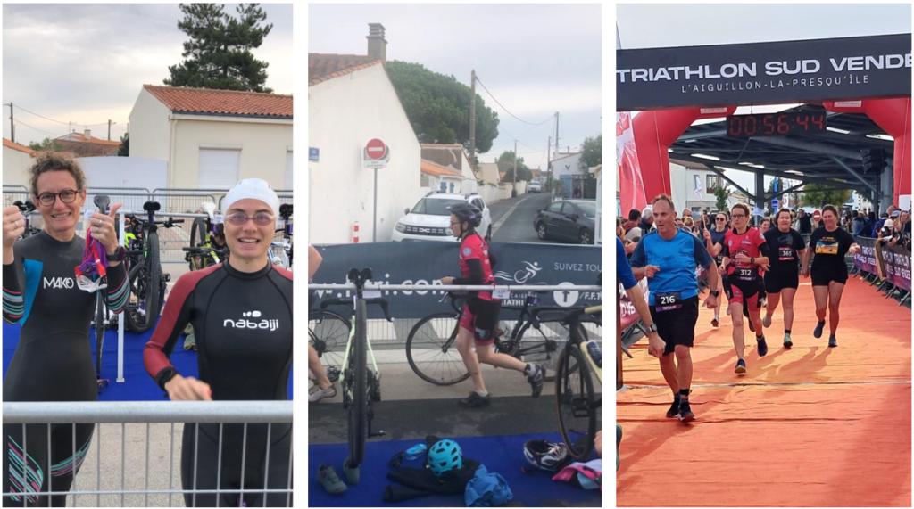 “Débriefing de ce 1re triathlon Open XS Sud Vendée, super organisation, temps parfait pour une course ! Un lieu idéal pour débuter car la nage se fait dans un lac d’eau de mer sans vagues ! Et terrain tout plat pour le vélo et la course à pieds !