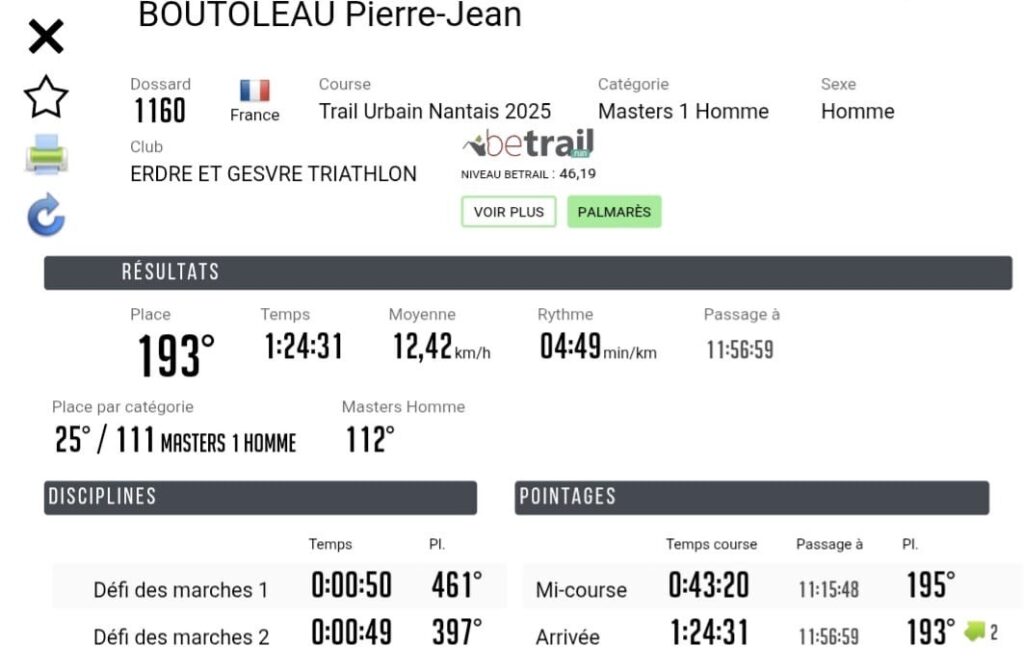 Pierre-Jean a fait le trail urbain de Nantes le dimanche 26 octobre.