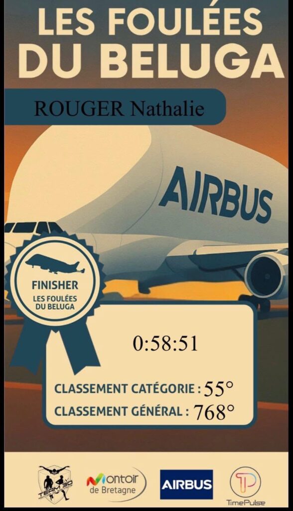 Une belle course en famille pour Nathalie le 6 décembre aux foulées du Beluga mais une petite déception de ne pas avoir vu le dit Beluga! Avec ses 2 filles, la course est bouclée en 1h, 768/1300 participants!
