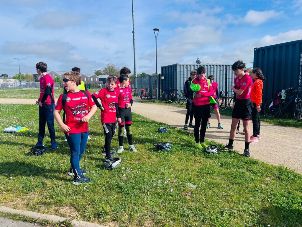 Le Samedi 4 avril , les jeunes, encadrés par François, Corentin et Anthony, ont fait un duathlon multi enchainé dans la campagne nortaise. Après cet effort intensif, retour au stade pour le réconfort…Les cloches étaient passées un peu en avance pour clôturer ce bel entrainement.