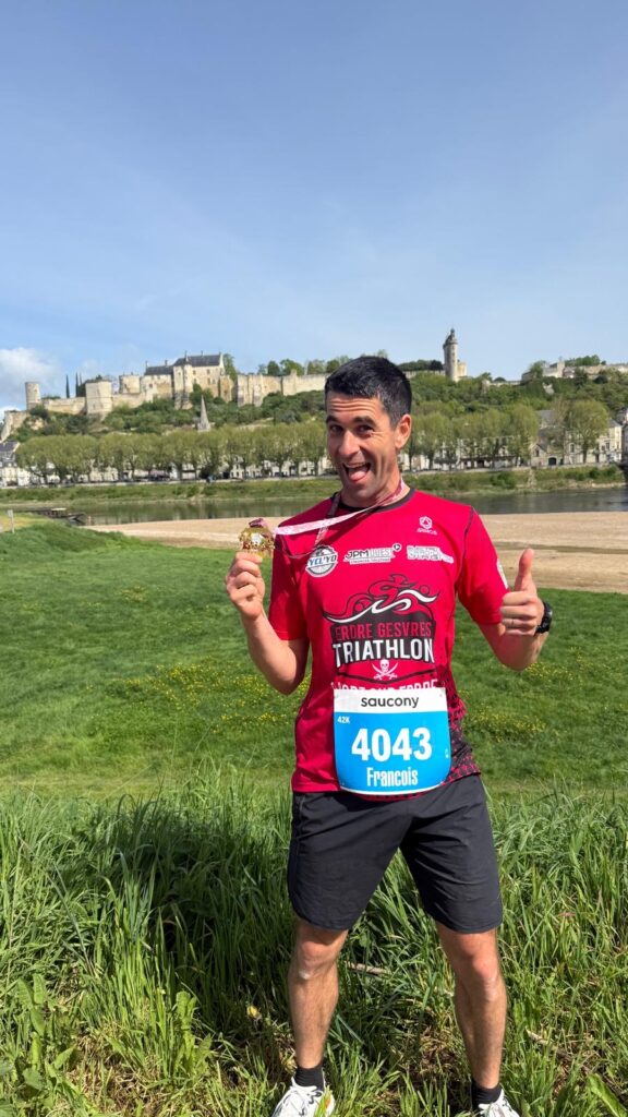 Belle perf pour François à Chinon le 12 avril. La tête dans le guidon, il a trouvé une belle course roulante, avec de jolies vues. Elles ont du passer furtivement néanmoins vu le chrono : 2h47’21, 23ème/1000. Une fusée !